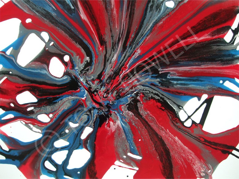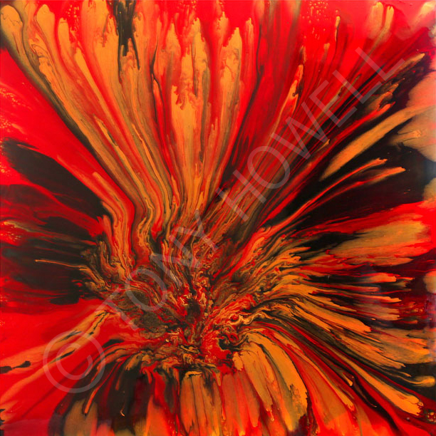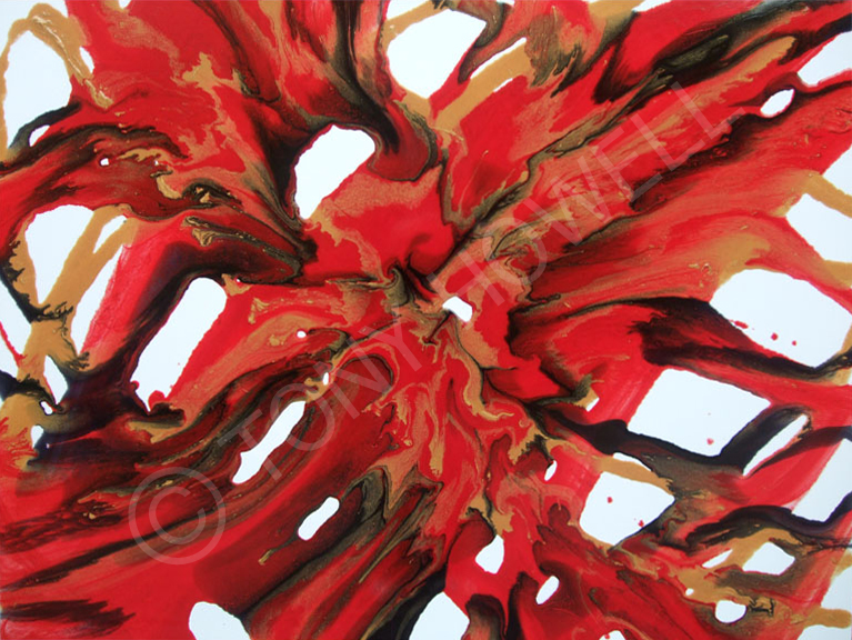 Using a self devised chemical reaction technique Tony creates fantastic and passionate explosions of colour and movement with each painting being completely unique